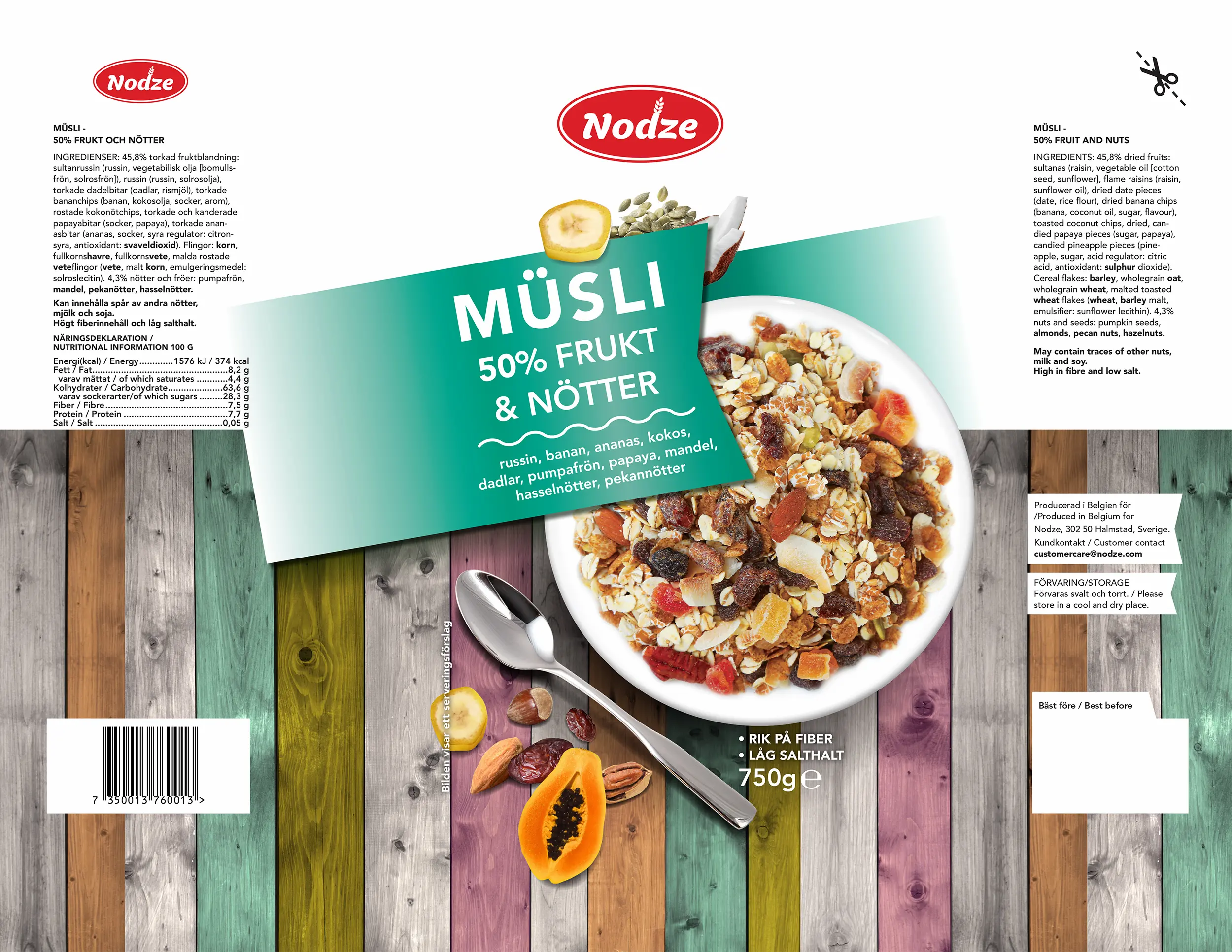I detta projekt har ImagineX formgivit förpackningsdesign till två müsliförpackningar och åt företaget Nord365 för deras varumärke Nodze. ImagineX har även designad logotypen för Nodze.